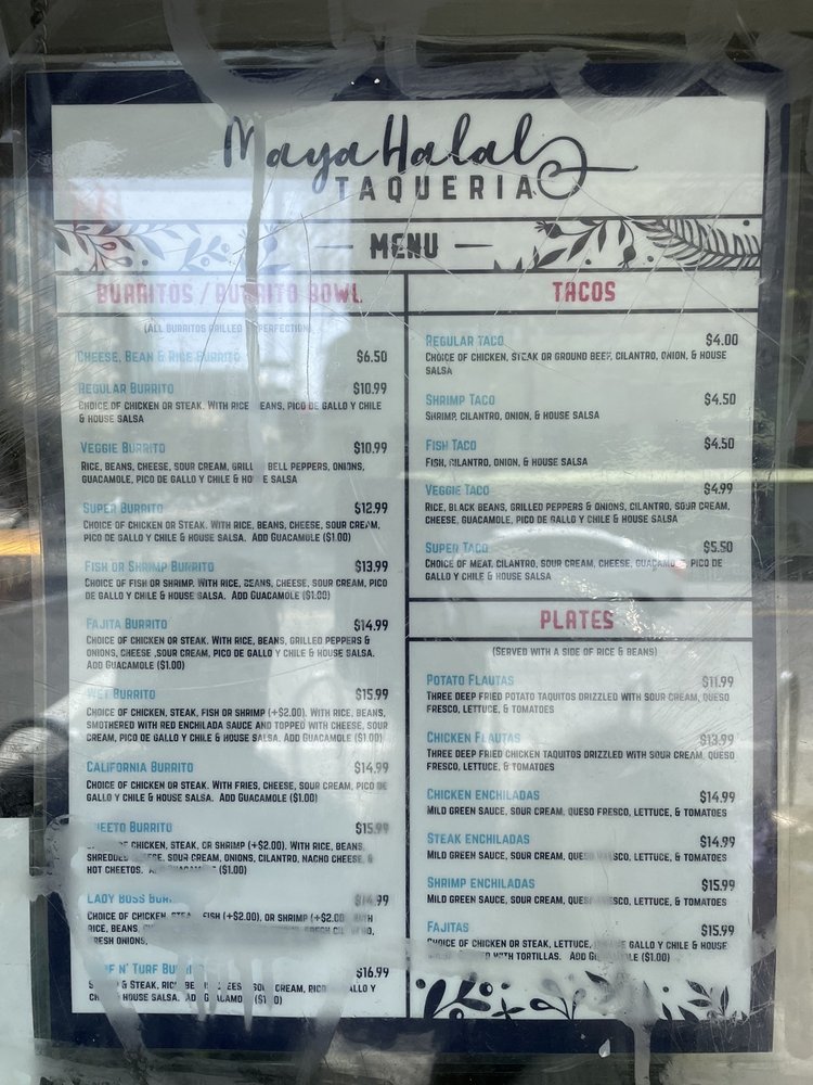 Maya Halal Taqueria Menu (Update 2025)